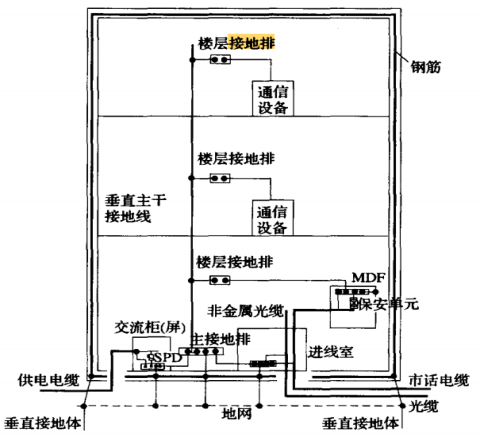 (1)地排:接地排采用联合接地方式,与建筑物梁、柱的主钢筋有效连通。接地排就近连接到垂直主干接地线。接地排应靠近信源设备安装位置,便于就近接地。单个地排孔洞数不少于6个孔位,最终孔洞数量根据各运营商具体需求确定。各信源设备及电源线的保护地接地线严禁复接、串接。